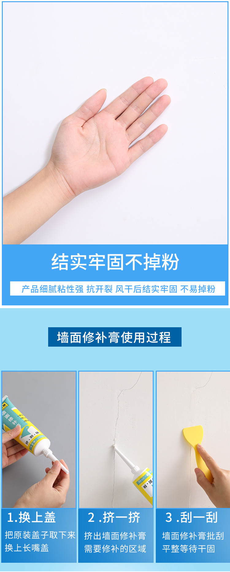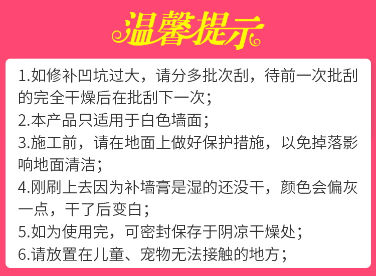 强烈推荐 覆盖性佳 轻轻一刮 就能补好补满 墙面瞬间完好 修补墙面不再是麻烦事