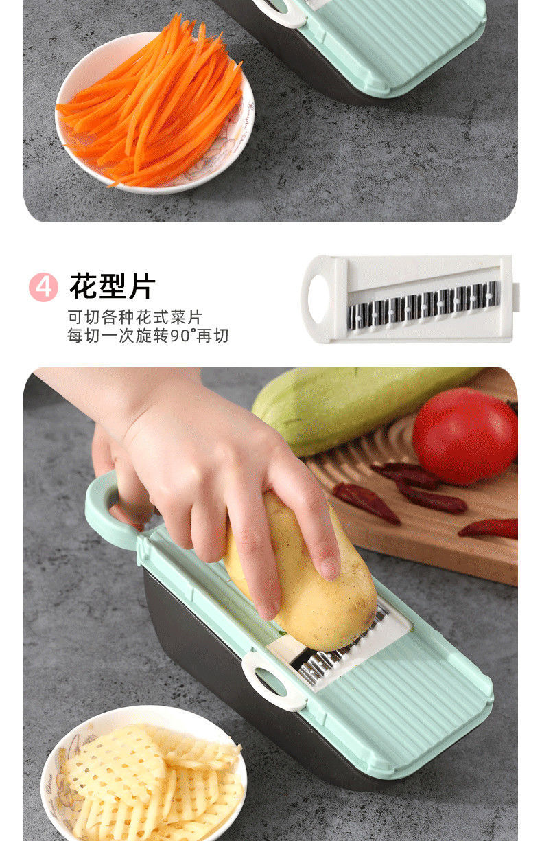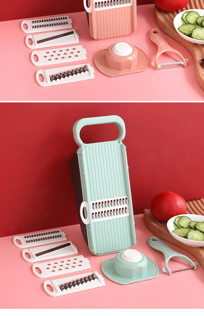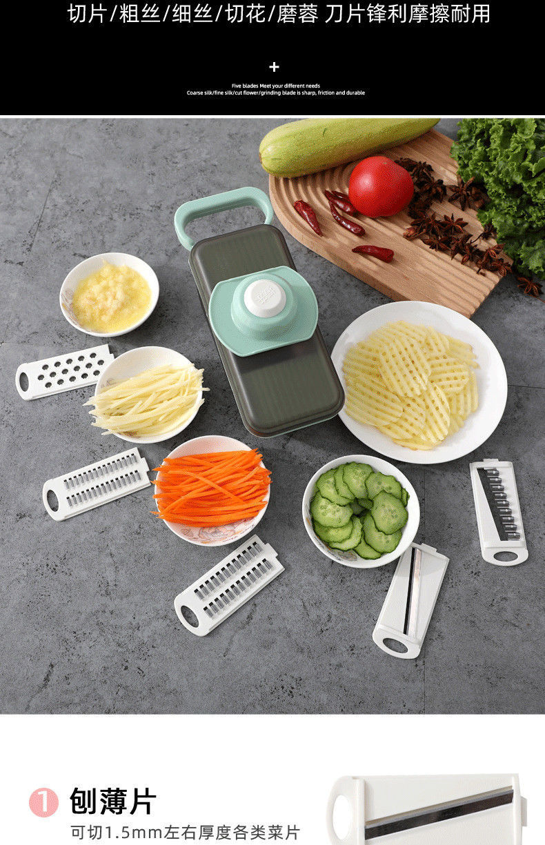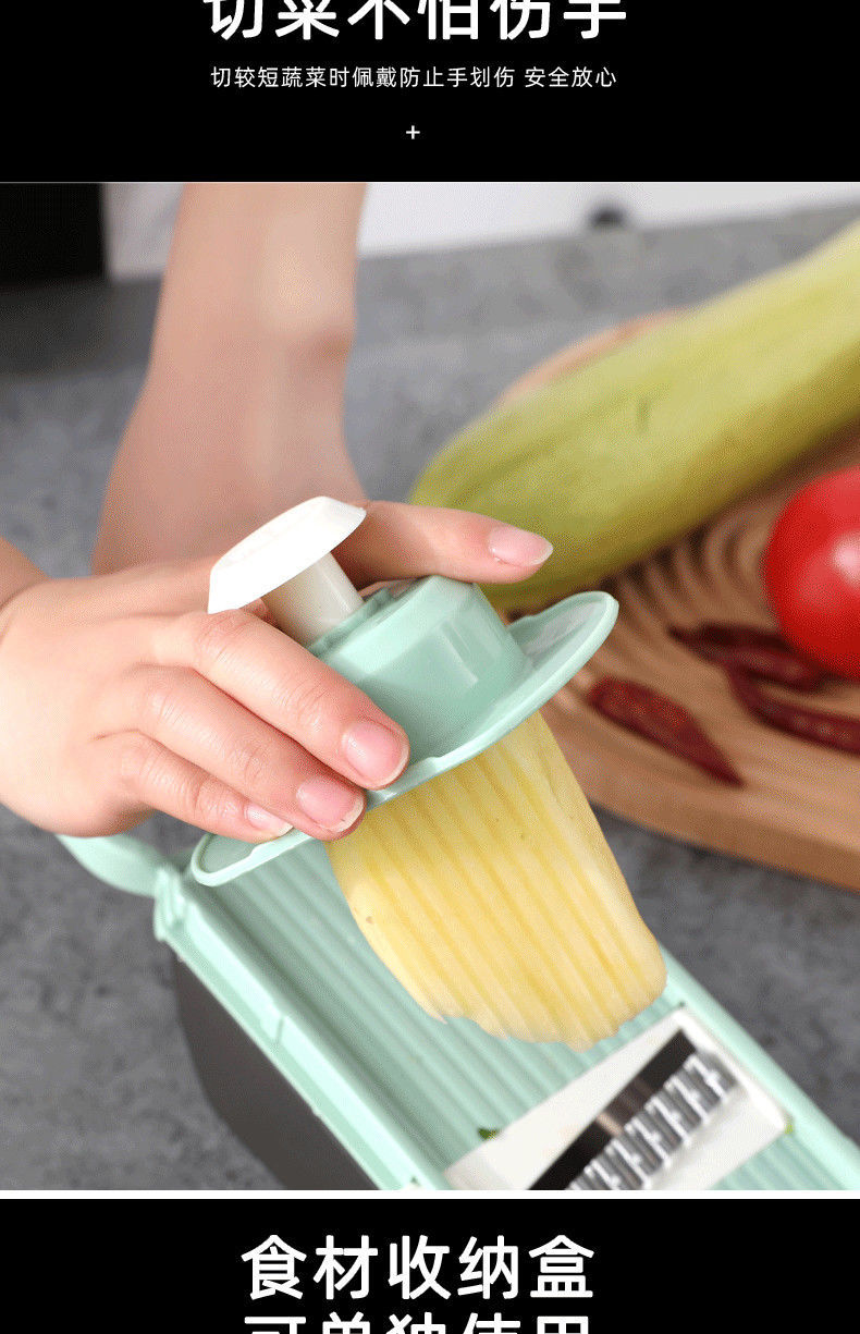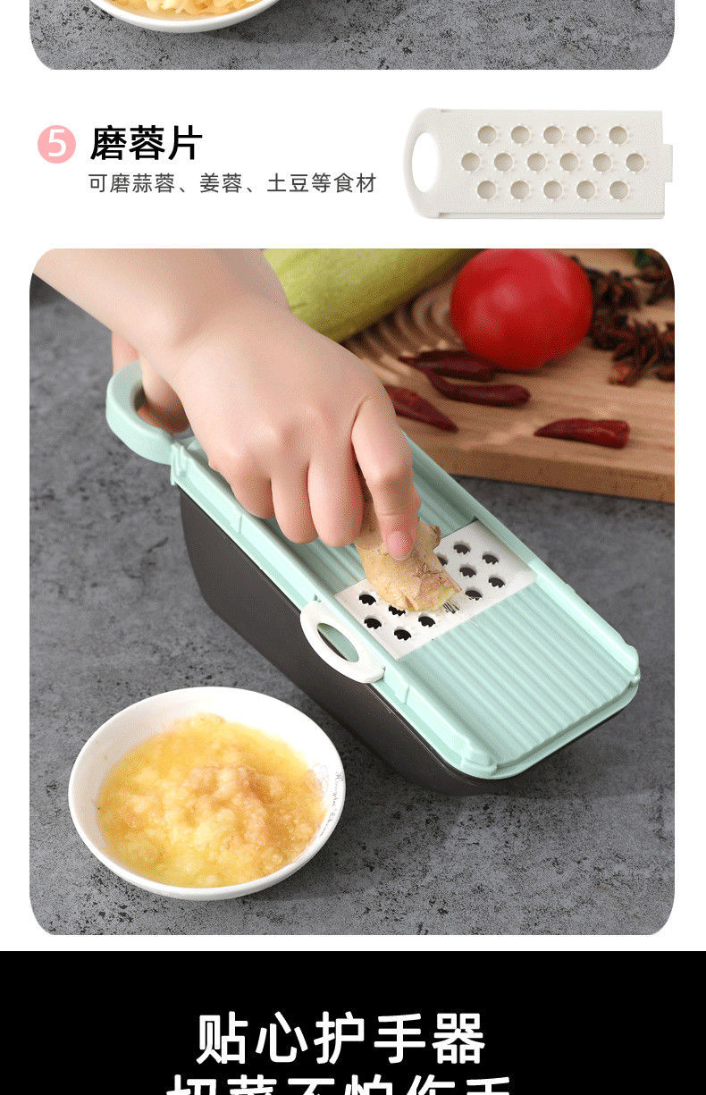 多功能护手刨丝器切菜器-豪华7件组(5刀片+收纳沥水篮+护手+削皮刀)