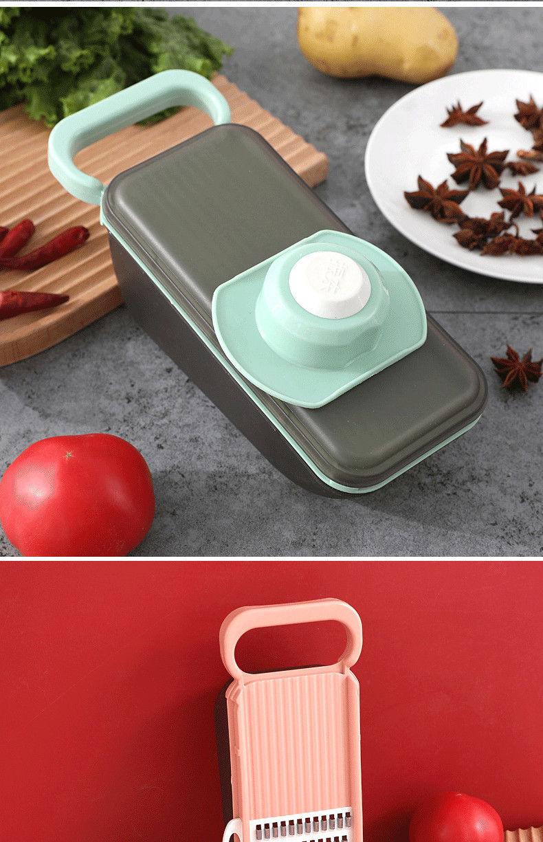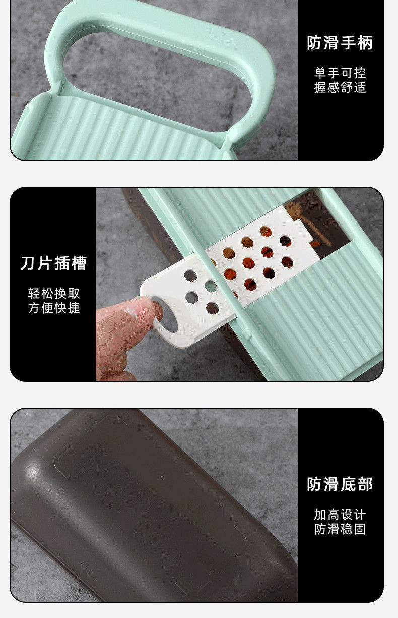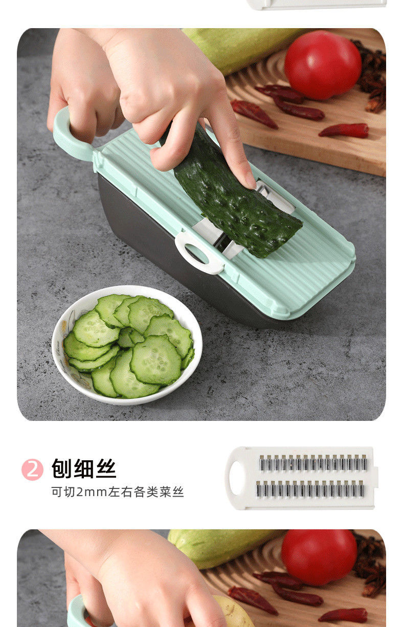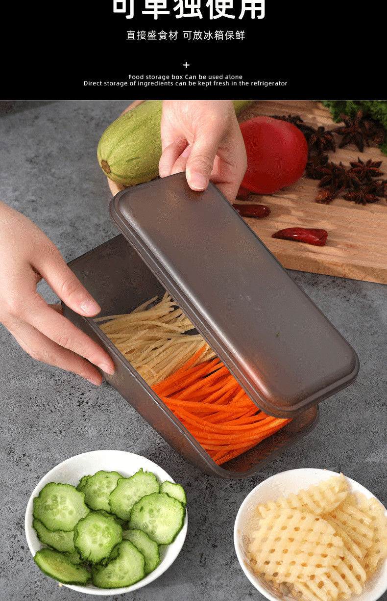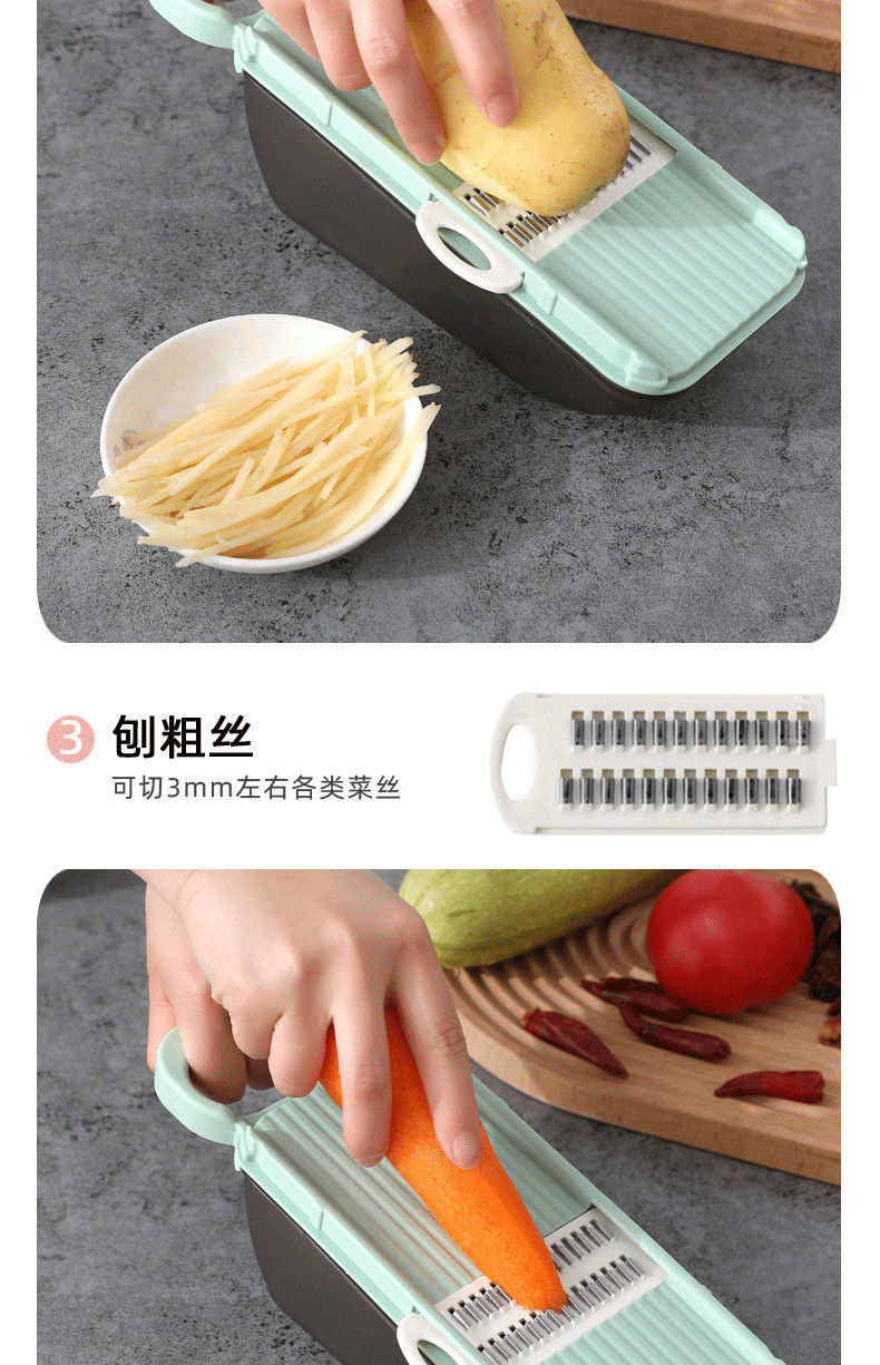 多功能护手刨丝器切菜器-豪华7件组(5刀片+收纳沥水篮+护手+削皮刀)